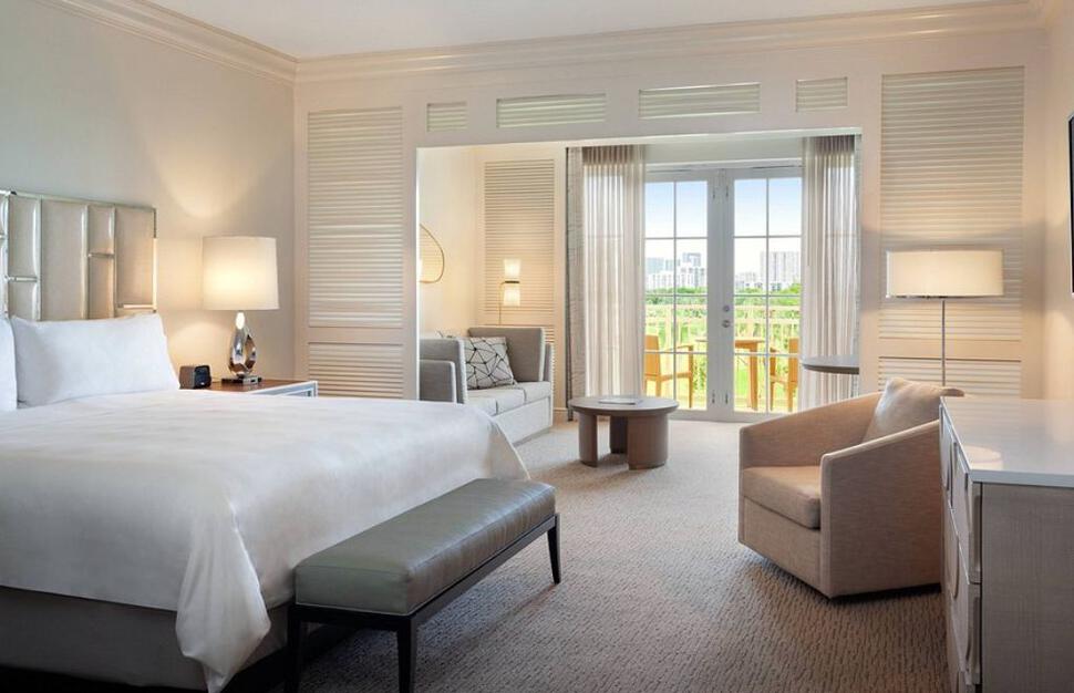The resort has 685 guest rooms and suites, starting at 550 sq ft. Each includes a full balcony with views of the golf course or resort grounds, air-conditioning, WiFi access, TV, iHome clock radio and docking station, telephone, Keurig coffee maker, mini-bar*, safe, iron and board, bathrobes and slippers, hairdryer, and bath amenities.