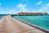 Overwater Villas with privately furnished terrace and steps down to the lagoon and 1 king-size bed, sleeping maximum 2 adults.
