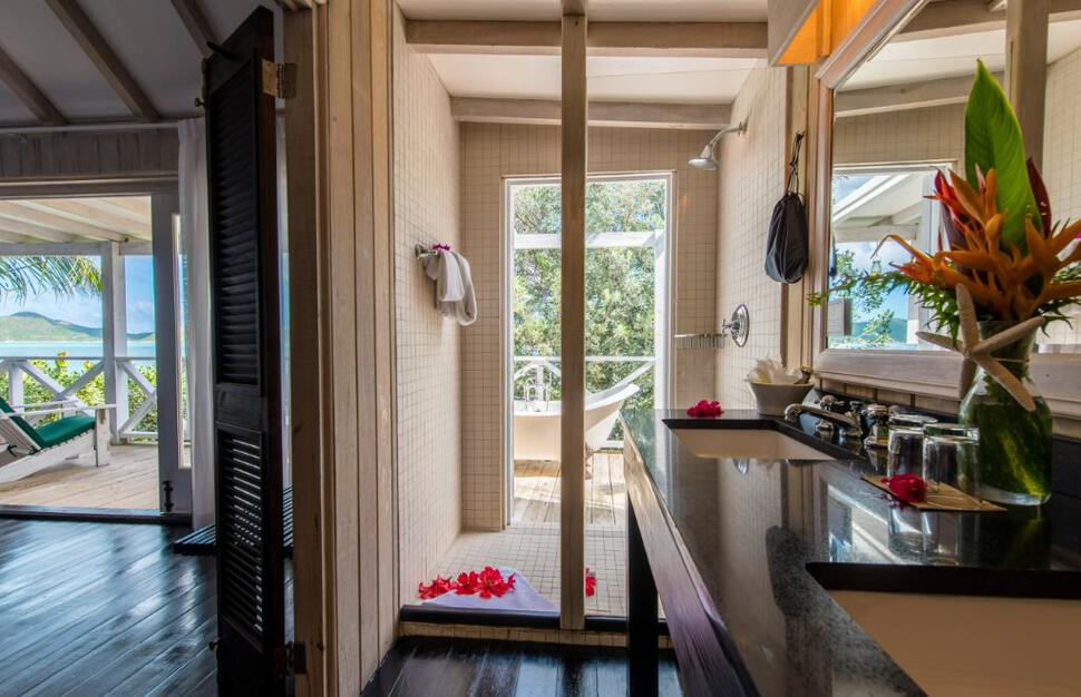Deluxe Cottages with Pool enjoy superior seaview locations, and have their own private plunge pool featuring ocean views, a double vanity unit in bathroom and bathrobes, and 1 king-sized bed, sleeping maximum 2 adults.