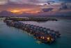 Platinum Overwater Villas are 75sqm, and sit over the water with a private terrace, direct lagoon access, sun loungers, 55” TV, en suite with bathtub and shower, and either 1 king-size or 2 twin beds, plus a sofa bed, sleeping maximum 4 people with a maximum of 3 adults.