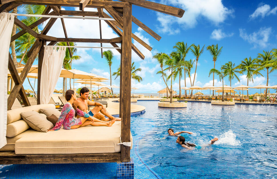 Ziva 1-Bedroom Oceanview Swim-Up Suite with separate living room, and master bedroom with 1 king-size bed and sofa bed, sleeping maximum 4 adults or 2 adults and 2 children (3-12 years).