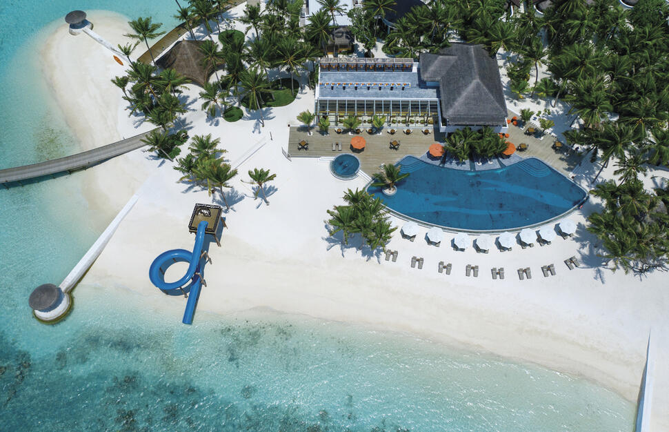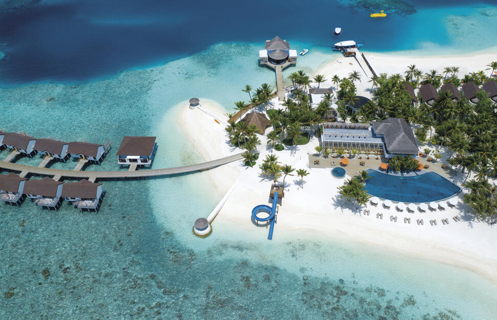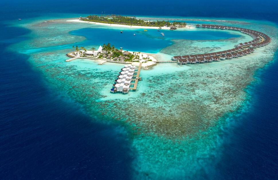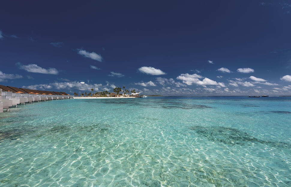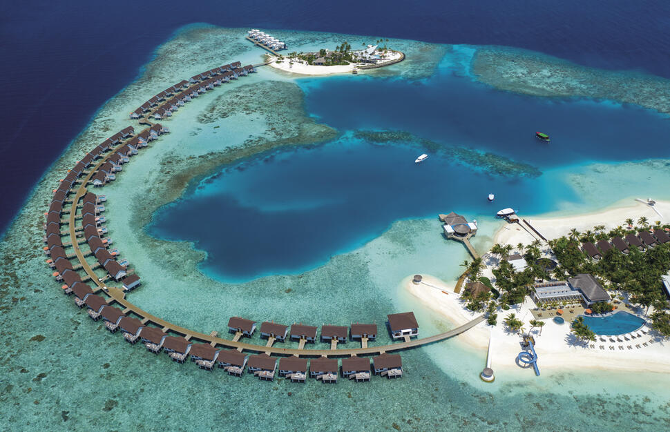 On the north-western edge of the Malé Atoll, this resort is set over two small islands linked by a curve of water villas, with the spa and two restaurants on the smaller island, and most other amenities on the larger island. Complimentary speedboat transfer to and from Malé International Airport: 50 minutes, operating 24 hours a day, 7 days a week. On arrival day, guests will be met by representatives at the airport and escorted to the speedboat jetty. A boat host will be on hand to ensure a smooth journey.Hotel information