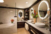Caribbean Honeymoon Butler Rondoval with Private Pool Sanctuary are in individual circular buildings with cone-shaped roofs, and feature a private plunge pool. These suites also feature a bathroom with a bathtub/shower combination and marble vanities.