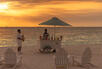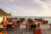 Grand Beach Villa (Main Island) with outdoor bathrooms, beachfront terrace, dining area, daybed and sun loungers and 1 king-size bed, sleeping maximum 3 adults or 2 adults and 2 children.