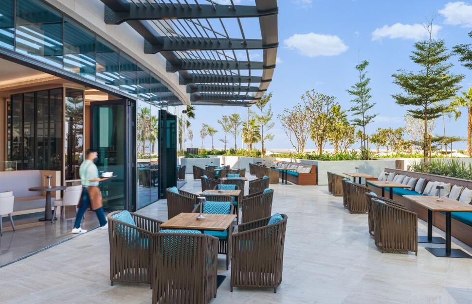 One Bedroom Executive Sea View Suites with Balcony are spacious, larger suites featuring your own private balcony overlooking the Arabian Gulf, and complimentary breakfast, as well as VIP welcome amenities and happy hour at Li’ Brasil (selected house beverages only, restricted to the bar area from 5pm to 7pm), with 1 king-size bed, sleeping maximum 2 adults and 2 children, or 3 adults.