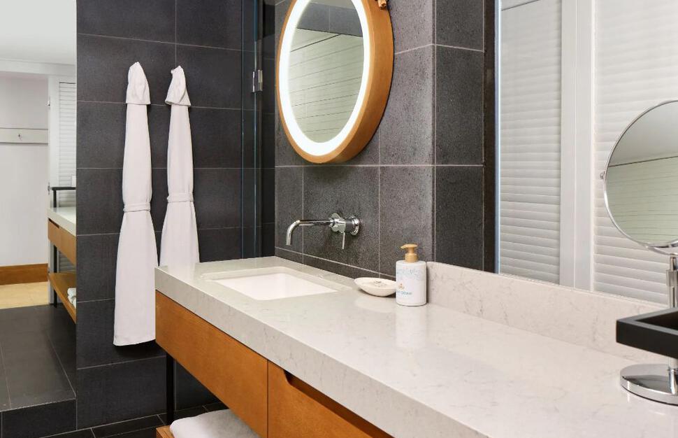 Spacious Poolside Suites with direct access to an adults-only tranquility pool offer a separate living area, wet bar, a dining table, bathroom with a large soaking tub, a sleeper sofa and bedroom with 1 king bed, sleeping maximum 2 adults.