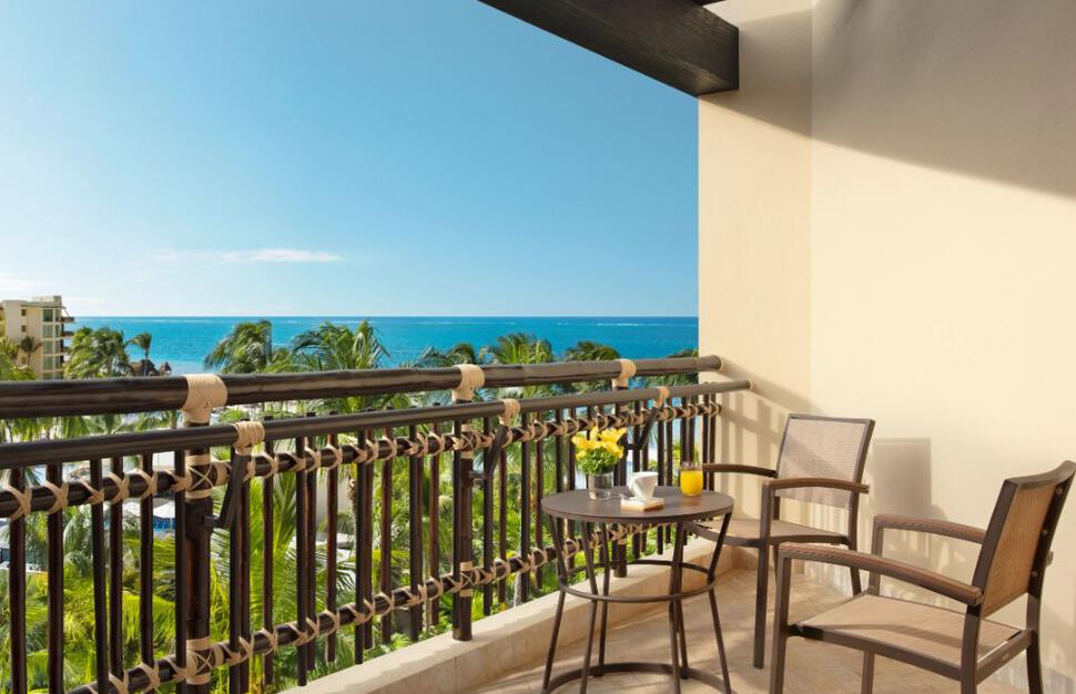 Preferred Club Ocean View Rooms with outside whirlpool on the terrace, upgraded amenities and 1 king-size bed or 2 double beds, sleeping maximum 3 adults or 2 adults and 2 children.
