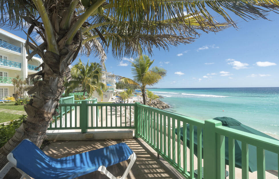 Deluxe Ocean Front Studios are located in the Deluxe Wing and feature captivating ocean views of the Barbados south coast from the furnished balconies. With either 1 king-size bed, sleeping maximum 2 adults or 2 double beds, sleeping maximum 4 adults or 2 adults and 2 children.