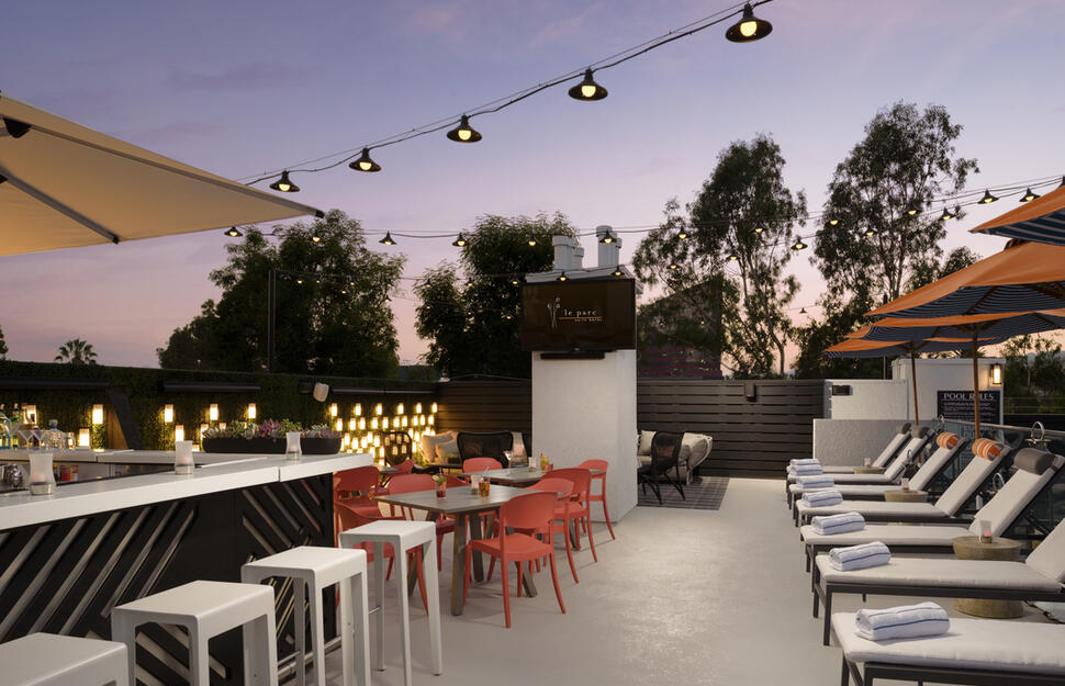 Knoll at Le Parc (farm fresh restaurant). Skydeck with heated pool and cabanas. Complimentary coffee in hotel lobby. Complimentary wine social hour between 5.00pm-6.00pm. Fitness centre. WiFi, business centre. Laundry/dry-cleaning service*. Valet and self-parking $65 per night (payable locally, subject to change).