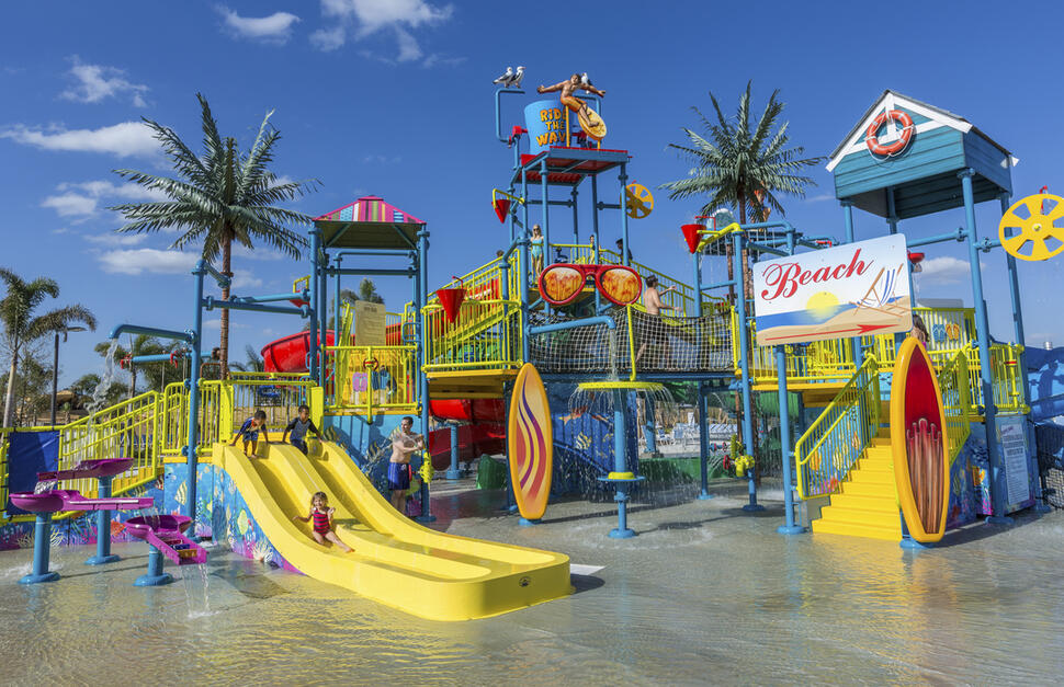 Swimming pool. Aquapark with drop slide, water slides and children's splash area. Poolside cabanas*. Clubhouse. Fitness centre. Football. Tennis court. Basketball. Sand volleyball court. Hang Ten Hideaway (children’s indoor recreation area with large-screen TV, gaming systems, crafts, and games). Regular children's activities. Arcade room. Mobile spa services*. Bike rental*.