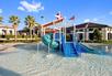 Oasis waterpark with two resort style heated swimming pools, including a zero entry area one, lazy river, water slide and children’s splash area. Poolside cabanas*. Clubhouse. Fitness centre and aerobics room. Movie theatre and games room. Kids' playground. Oasis kids' camp*. Tennis courts*. Volleyball courts*. Public 18-hole golf course with a driving range and putting green* as well as a golf clubhouse and pro shop.