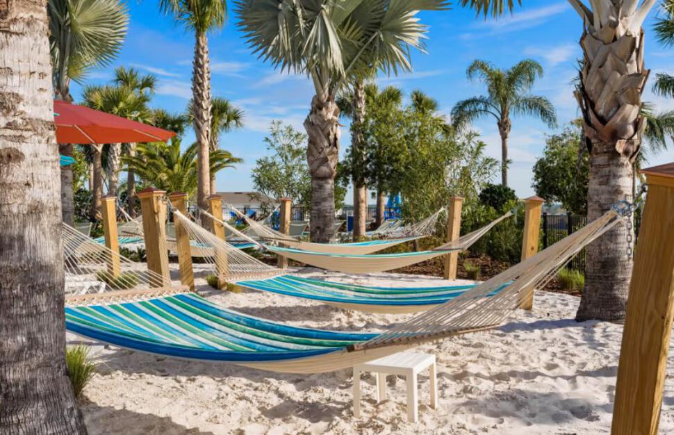 Water park with zero-entry resort pool, waterslides, and lazy river. Whirlpool. Children’s play area. Fitness centre. Poolside cabanas*. 9-hole mini-golf course. Fire pit and picnic area. Basketball. Cornhole. Volleyball. Games Room.