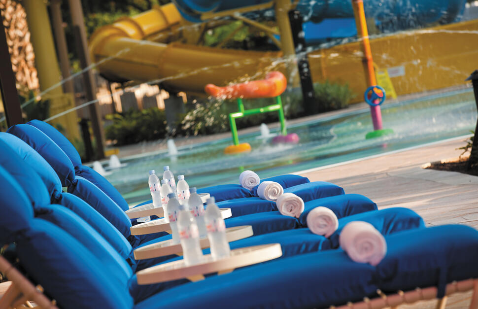 Huge outdoor pool, children’s pool, R Aqua Zone (an interactive water playground), 2 Jacuzzis, 24-hour complimentary fitness centre, full-service spa*, 24-hour games room, activity area, ping pong, foosball and jogging trail nearby.
