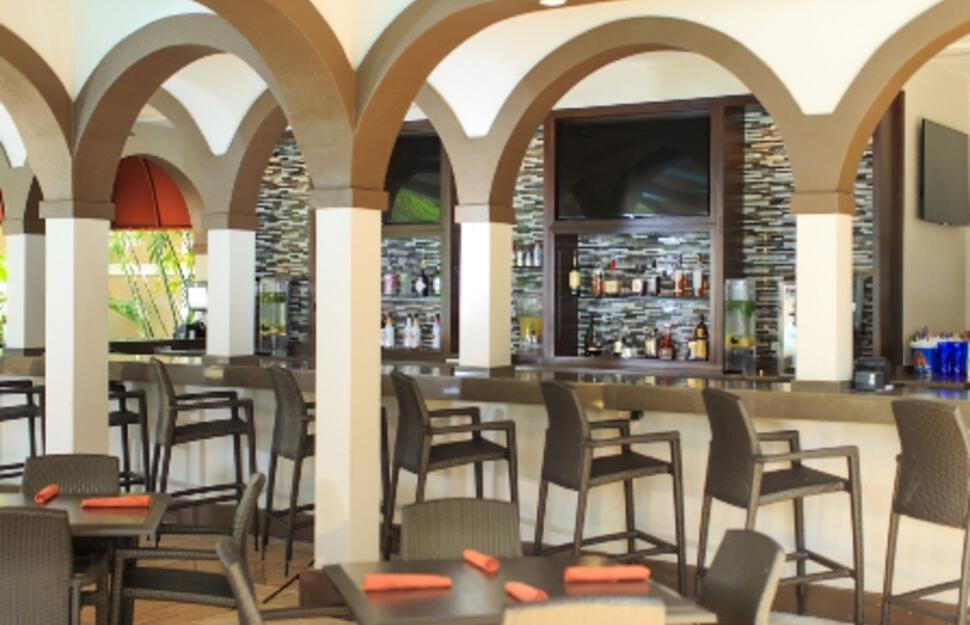 Tradewinds Restaurant (casual dining), Boardwalk Sports Bar, Palms Pool Bar & Grill (serving sandwiches, burgers and drinks) and Starbucks® coffee shop.