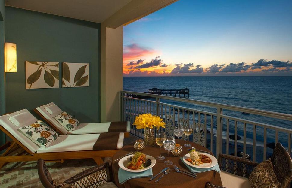 West Bay Oceanview Penthouse Club Level Suites are on the top floor of the building, with views of the ocean, gardens and pool from the private balcony.