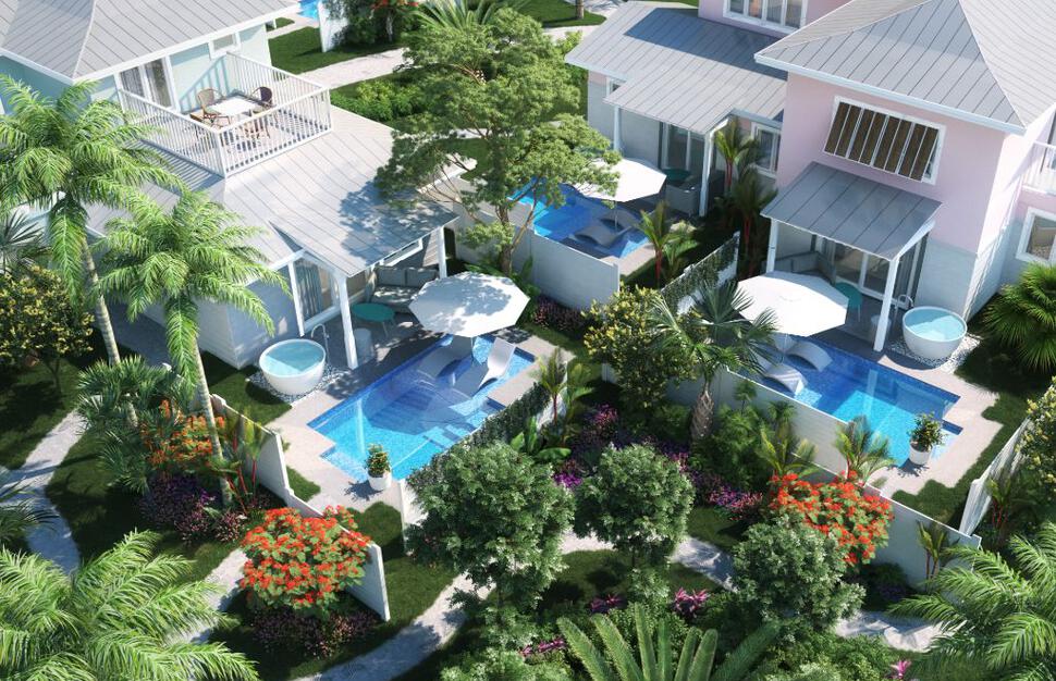 Island Village One Bedroom Walkout Butler Villa Suites feature an enclosed private patio complete with plunge pool and tranquillity soaking tub for two. The suite consists of a separate living room and master bedroom.