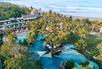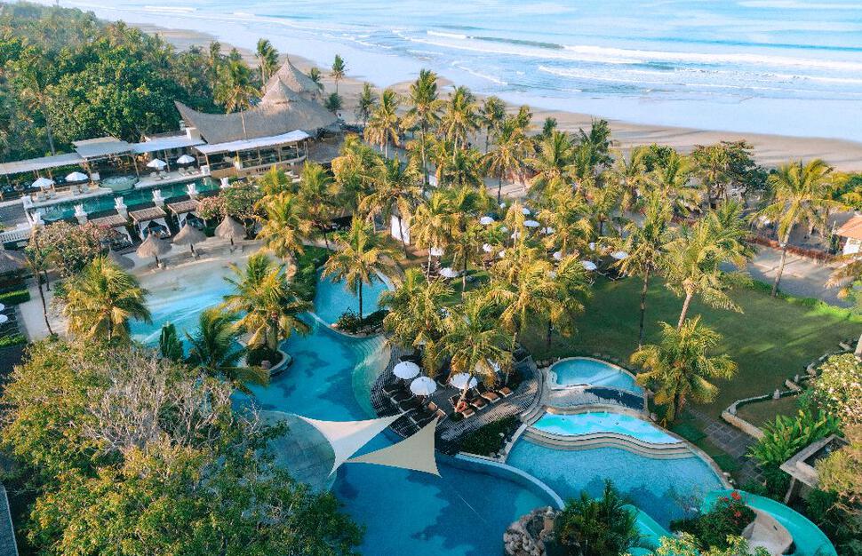 An oceanfront paradise, Bali Mandira Beach Resort & Spa boasts one of the most beautiful locations, overlooking the vast expanse of the famous Legian Beach. Perfect for relaxation yet close to everything Legian and Seminyak are known for, it offers the best of both worlds—serene moments under the sun and a lively holiday atmosphere. Whether you’re a family traveling together or a couple seeking romance, there’s accommodation to suit every need—from deluxe cottages and suites to private pool villas. The resort is rich in amenities, featuring two swimming pools (including an adults-only option) and Glow Spa, which blends Asian and Western-inspired traditions to melt away stress. For younger guests, the kids' club promises endless fun with cooking classes, arts and crafts, and Balinese dress-up photo sessions. When it’s time to dine, the resort offers several enticing options. Celagi Restaurant serves Indonesian, Asian, and international cuisine, while Barong Bar, the inviting poolside bar with an oceanfront terrace, is perfect for dining and lounging—famous for its thin-crust pizzas and wide selection of sunset cocktails. For something trendier, Azul Beach Club, an ultra-hip, treehouse-inspired beach club, serves international coastal cuisine with plenty of seafood options