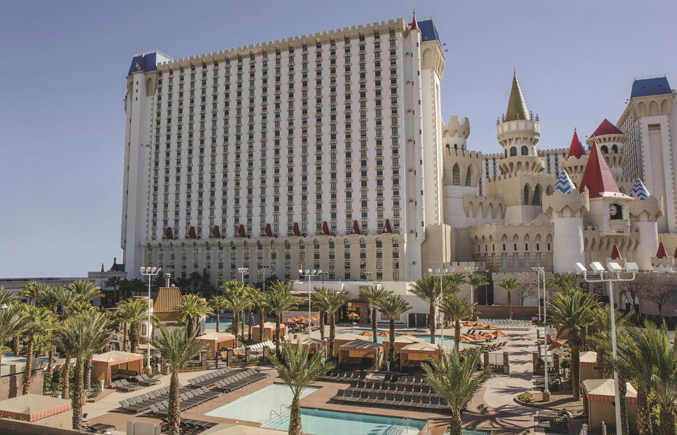 This good value on-strip casino hotel boasts an enormous pool area and is home to the must-see Tournament of Kings dinner show, complete with knights on horseback, jousting, pyrotechnics and Merlin himself. Las Vegas’s take on old England, the Excalibur would surprise the Knights of the Round Table. But that’s where it leaves England behind and takes on the world. There’s the all-American casino (with 100,000 sq ft of gaming), games arcade, and branch of Johnny Rockets’ famous hamburger chain. There’s Italy, Mexico and Asia (and a bit more America) in its casual restaurants and food court. And there’s Australia in its ‘Thunder from Down Under’ adult show and Australian Bee Gees tribute concert.