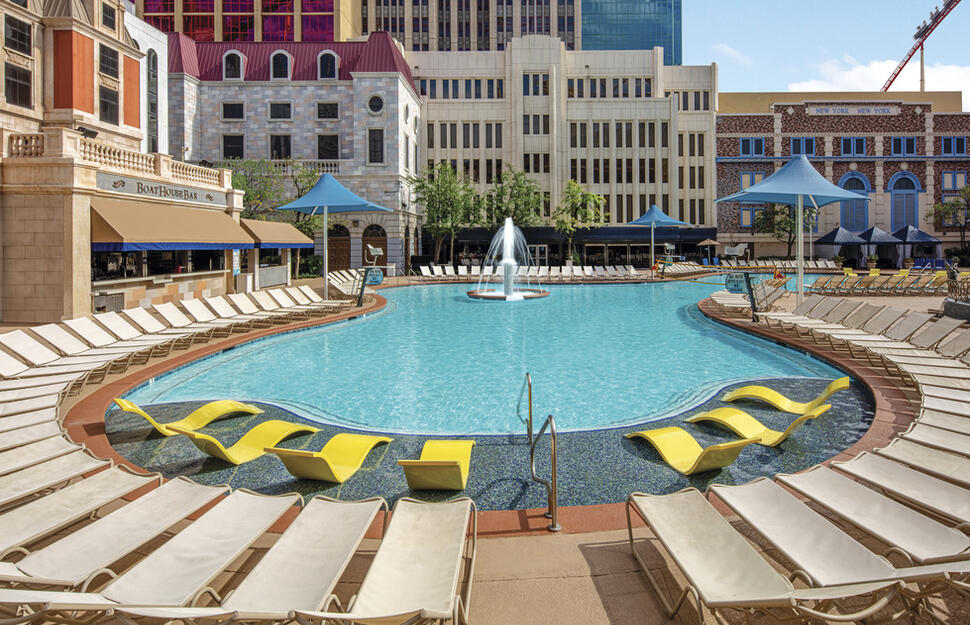14 restaurants, 9 bars and lounges. Selection of dining including Gallaghers Steakhouse, Chin Chin Cafe, Gonzalez Y Gonzalez (Mexican), America, Quick Bites, Bar at Times Square™, Nine Fine Irishmen®, Broadway Burger Bar & Grill, Nathan's Famous Hot Dogs, New York Pizzeria, HERSHEY'S Chocolate World, Tom's Urban and Shake Shack, and several lounge bars. The Big Apple Coaster, swimming pool (open seasonally). Enormous casino. Great shops. Guests staying at New-York-New York can visit the Grand Spa at MGM Grand or The Spa at Park MGM if they are interested in a spa treatment or massage during their stay.