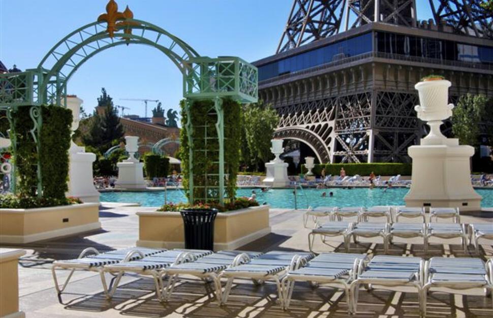 Bordeaus Pool View Rooms offer views of the Paris pool as well as partial Eiffel Tower views, with either 1 king-size bed or 2 queen-size beds, sleeping maximum 4 people.